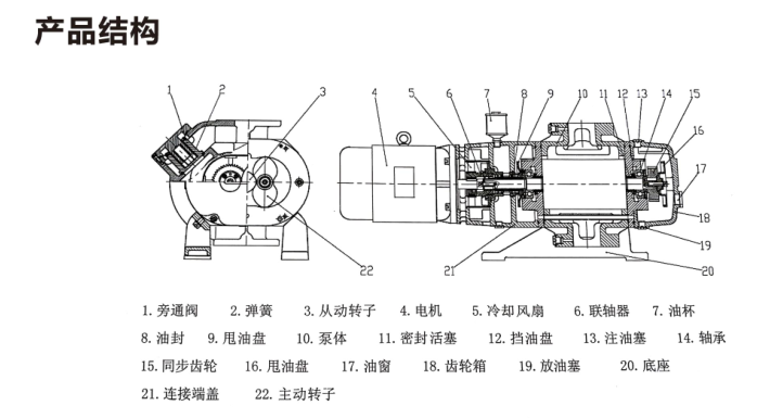 1、轉(zhuǎn)子與泵腔、轉(zhuǎn)子與轉(zhuǎn)子之間無摩擦,不需潤滑油,故泵腔內(nèi)無油,避免了由對真空系統(tǒng)的污染。